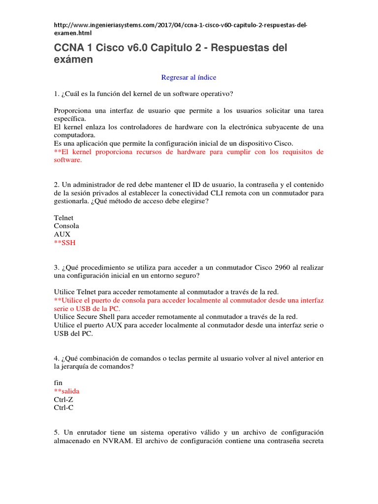 Cisco ITN CCNA 1 v60 Chapter 2 Exam Answer RS 2018 2019 005. CCNA1 v6 Capítulo 1 Examen Español. Cuál es la función del kernel de un software operativo. CCNA 4 v60 Connecting Networks Capitulo 1 Examen Respuestas en Español. Increase Your Earnings Hiring Potential Today.